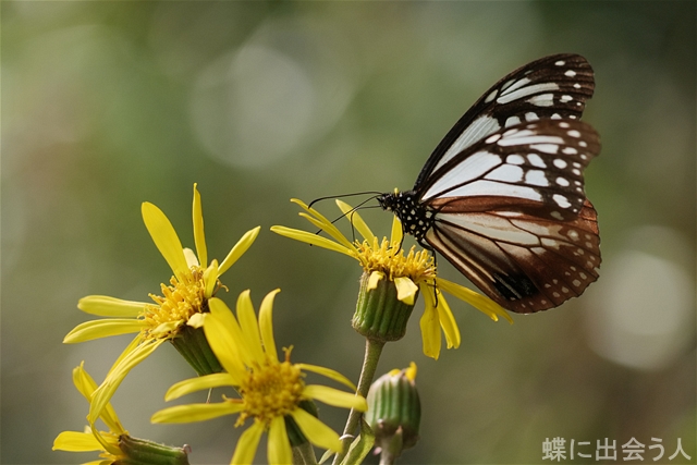 林の中の薄暗い場所でもポツポツとツワブキが咲いていて、双眼鏡で確認すると2頭のアサギマダラが来ていました。