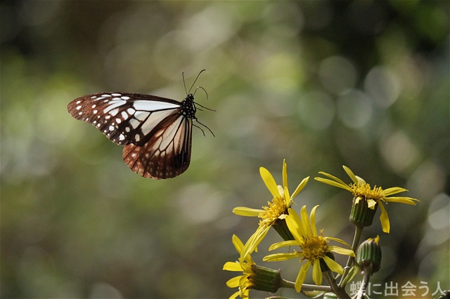 さて、そろそろ帰ろう。と思ってもう一度フジバカマ畑をチェックすると、見慣れない白い蝶がスイー、スイー、と飛んで来ました。