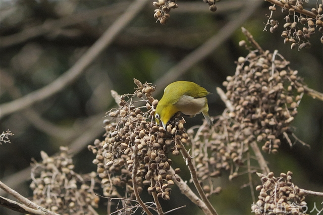 メジロの群れがヌルデの実を食べに来ていました。