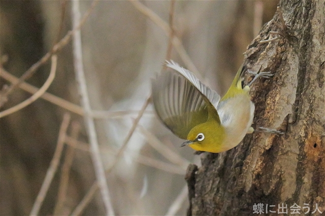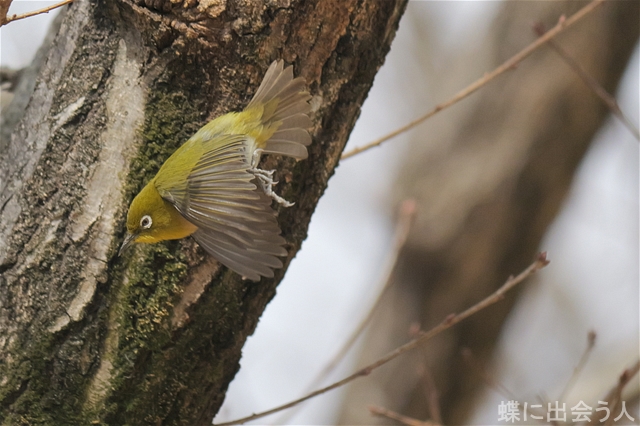 再びクヌギ林に行くと、メジロが樹液に来ていました。