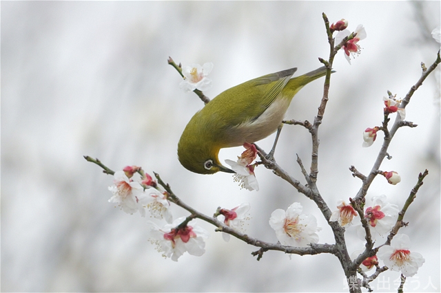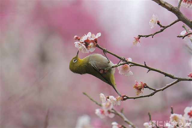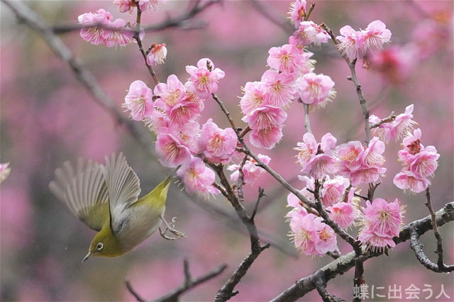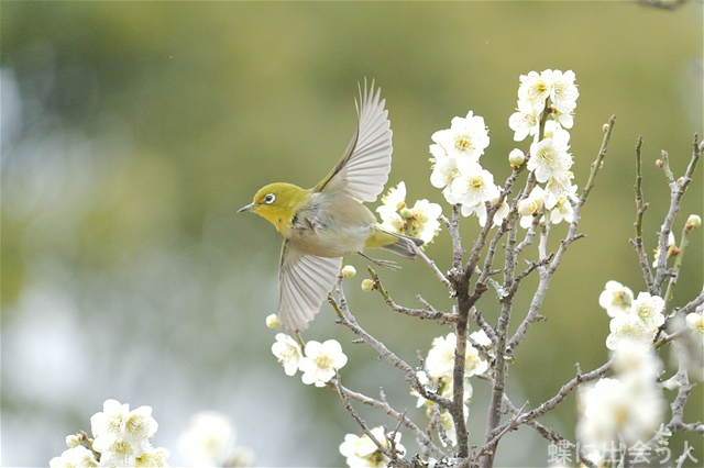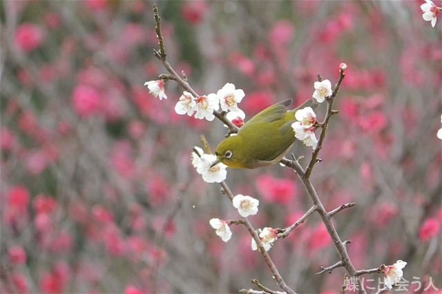 普通の花見客の方が野鳥カメラマンよりもじっとしているので、メジロが近づいて来るという皮肉。