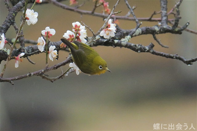 傘を差しながらメジロを撮影しましたが、やはりどうにも撮りづらいので、途中から傘を差すのは諦めました。