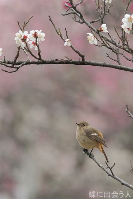 来る時、梅林前の道路を通りかかると、ガードレールにジョウビタキがとまっていて、誰がこんな所にテニスボールを置いたのか?と思ってしまいました。