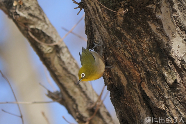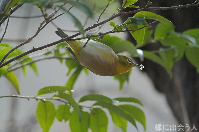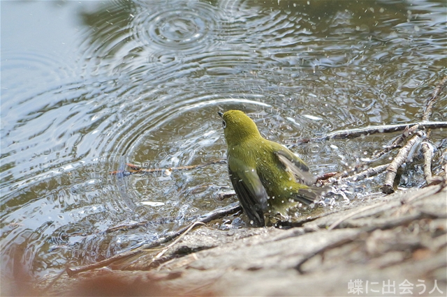 日が高くなってから再び水浴びポイントに行ってみると、またメジロが来ていました。