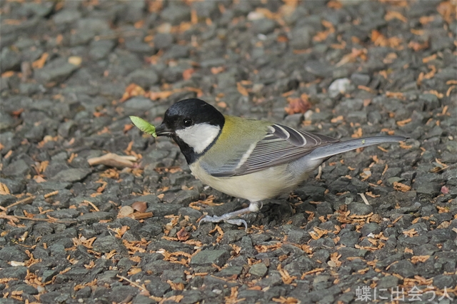 餌を探している混群を撮影中カメムシが落ちて来たと思ったら、すぐさまシジュウカラが舞い降りて、さらっていきました。