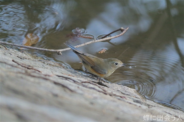 水飲み場では、ルリビタキのメスがやって来ました。