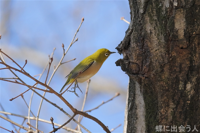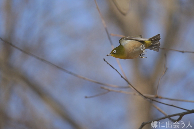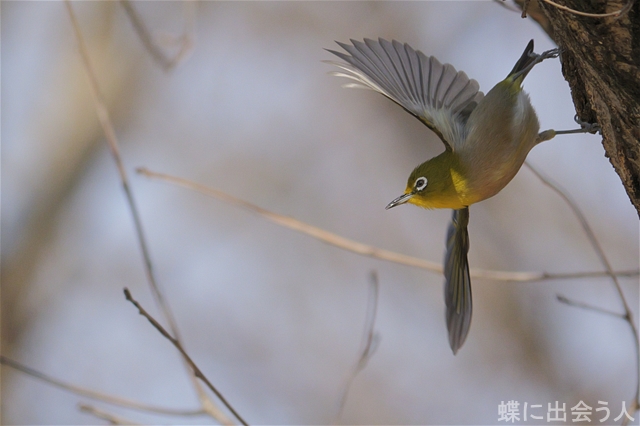 クヌギ林でメジロの飛び立ちを撮影。