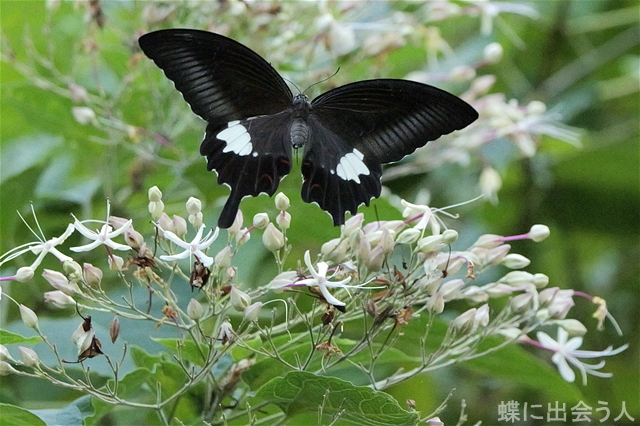 こちらのクサギは辺り一面に甘い香りを漂わせるほど花の数が多く、多数のアゲハ類を引き寄せていました。
