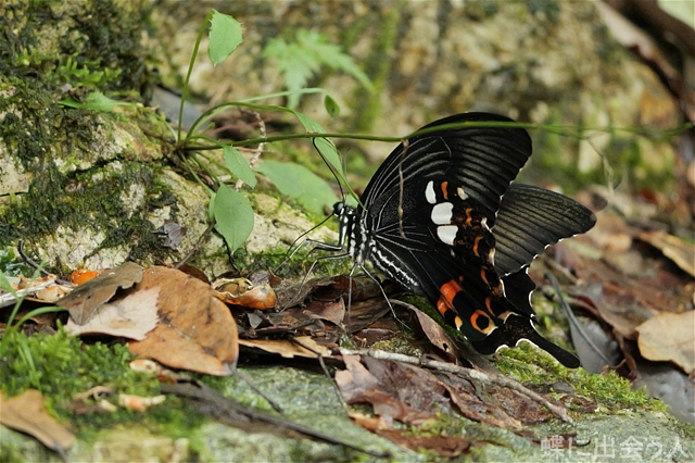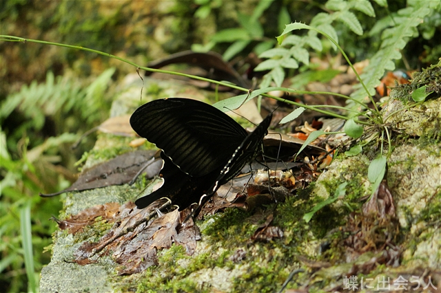 道路が湿った場所に行ってみると、例によってモンキアゲハが吸水に来ていました。