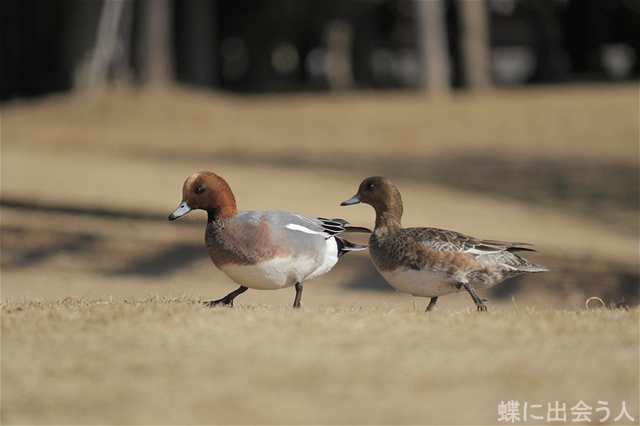 ヒドリガモは10時を過ぎると、通行人のいる所に堂々と上陸して来て草を啄んでいました。