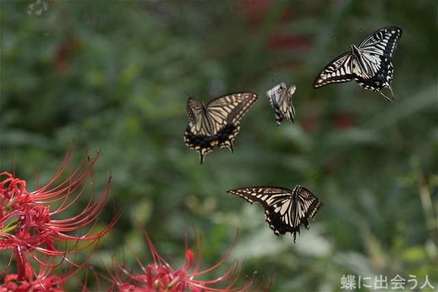 モンキアゲハやクロアゲハは汚損した個体が多く、比較的新鮮なカラスアゲハを選んで撮影。