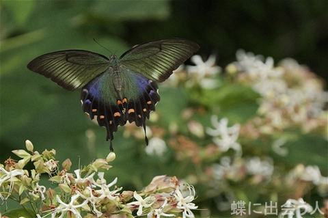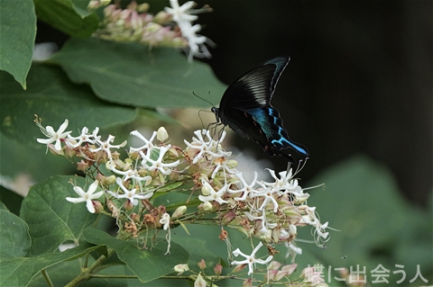 こちらのクサギは辺り一面に甘い香りを漂わせるほど花の数が多く、多数のアゲハ類を引き寄せていました。