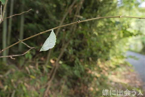 道路沿いのエノキやその周辺の草木で、アカボシゴマダラの蛹が3つ見つかりました。