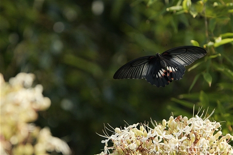 モンキアゲハやクロアゲハは汚損した個体が多く、比較的新鮮なカラスアゲハを選んで撮影。